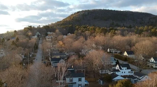 If you love hiking, then you will love hiking in Camden, Maine! You can access over 30 miles of trails right from our backyard. There is no need to pay the fee to drive to the top! The picture below is taken right from our backyard. The street on the left can be accessed from our back driveway and will lead you to the Mt. Battie Trailhead.