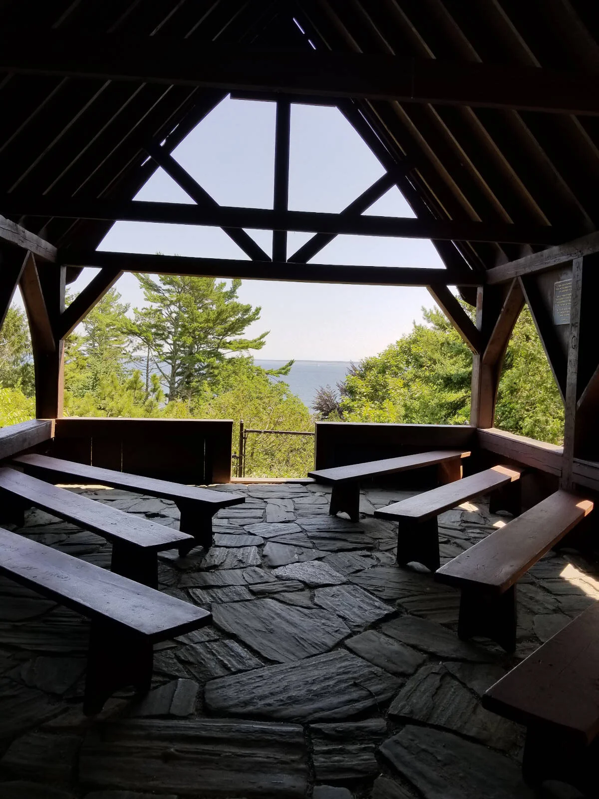 The chapel is a non-denominational, open outdoor chapel that is perfect for weddings or events, or just a perfect place to relax, reflect, meditate, paint, draw or read. It is open to the public mid-April through October. The combination of the views of the ocean and the peace and tranquility here at this chapel make this one of my favorite spots. And it’s just a short distance from our Camden Maine bed and breakfast.