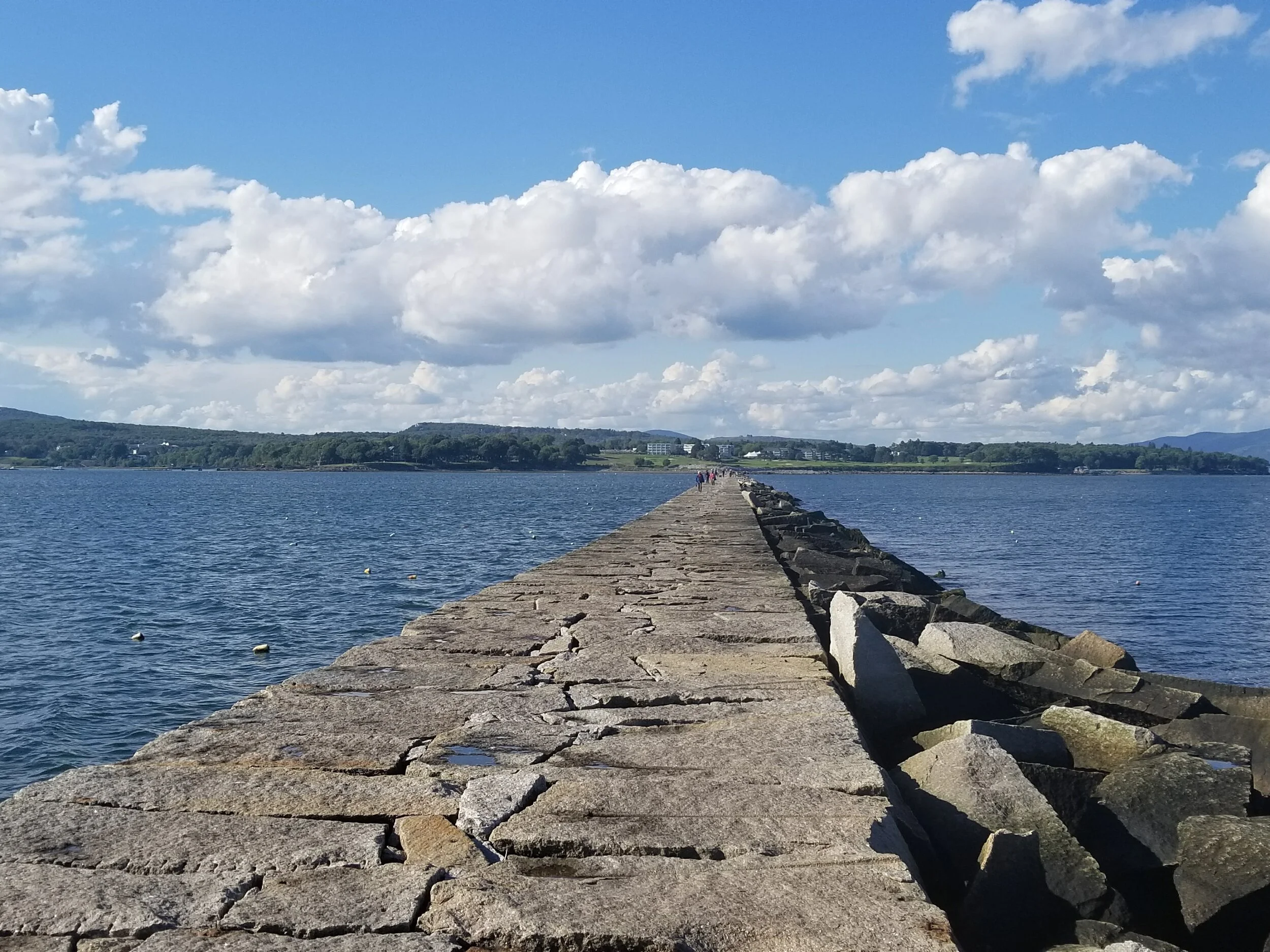 This bonus hike, also a “must-see” adventure, isn’t even a hike at all. Just shy of one mile, the breakwater lighthouse is located at the end of a man-made walkway made of a series of granite rocks, which jet out essentially to the middle of Rockland Harbor. You need to watch your step and skip over the breaks in the stone to reach the Breakwater lighthouse that sits prominently in the center of the Harbor. Located along the coast, by the Samoset Resort, just 15 minutes south of Windward House on Rt 1, there is a small private parking area that leads to the beach path that will take you to the jetty. During the height of the busy season, expect delays to find parking, but persevere, as this is a once in a lifetime view with great photo opportunities of the Harbor, lobster boats, schooners, and windjammers. Occasionally you can see wildlife, such as harbor seals playing in the surf.